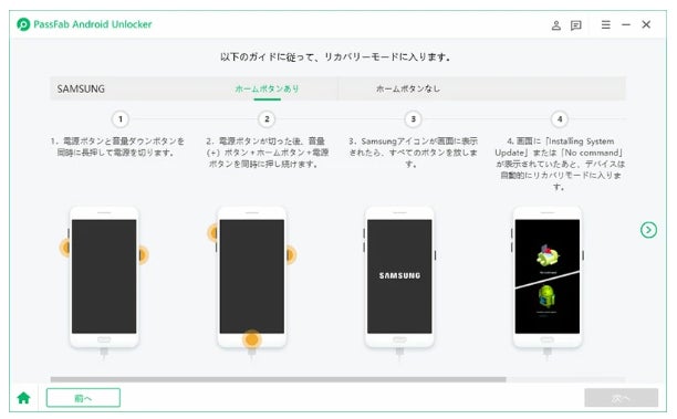 Step5:ガイドに従ってデバイスをリカバリーモードにします。