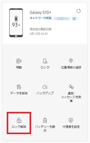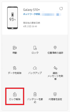 Step2:画面ロックを解除したいギャラクシーを選択して消去をタップします。