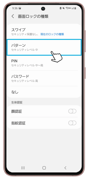 - パターン、PIN、指紋、パスワードの画面ロックを解除