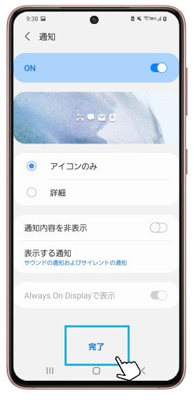 Step4:画面ロック時の通知表示に関する設定をして「完了」を押します。