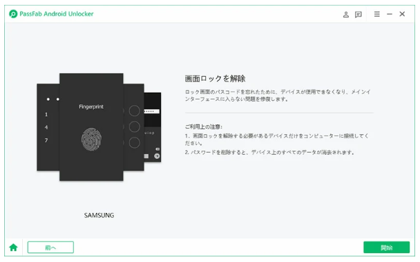 Androidデバイスのロック画面に特化した専門ツールPassFab Android Unlockerは、パスワードの入力など一切なしでギャラクシーのロックを解除できます。