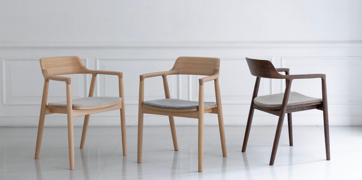 HIROSHIMAアームチェアをつくったときから、板座にも合うシートを考えていた。