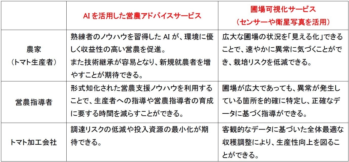 本実証試験で得られた成果を踏まえ、少量多頻度に対応したAI営農アドバイスと、作業負荷の軽減につながる自動灌漑制御機能を加えたサービスを、今後DXASが、主に欧州、米州、オーストラリアの加工用トマト市場に普及させていくことで、さらなる営農支援を加速していきます。