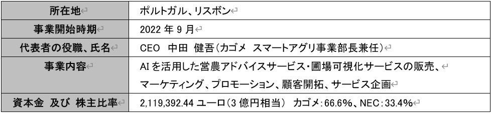 カゴメ株式会社(代表取締役社長:山口聡 本社:愛知県名古屋市、以下 カゴメ)と日本電気株式会社(代表取締役 執行役員社長 兼 CEO:森田隆之、本社:東京都港区、以下 NEC)が本年9月に設立したAIを活用して加工用トマトの営農支援を行う合弁会社「DXAS Agricultural Technology LDA(ディクサス アグリカルチュラル テクノロジー)」(CEO:中田 健吾 本社:ポルトガル、リスボン、以下 DXAS)は、NECの農業ICTプラットフォーム「CropScope(クロップスコープ)」に、少量多頻度灌漑(※1)に対応したAI営農アドバイスと自動灌漑制御機能(※2)を加えたサービスの提案を、本年11月より開始し、2023年4月からの展開を目指します。