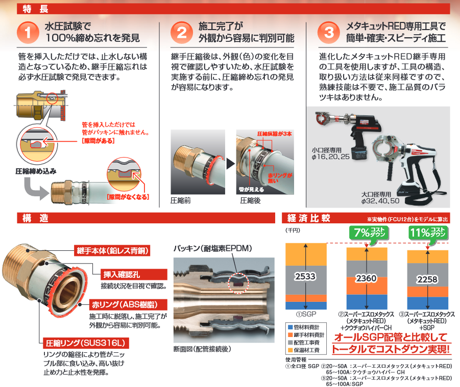 スーパーエスロメタックス用圧縮継手「エスロン メタキュットRED」品揃え拡大