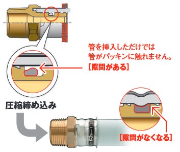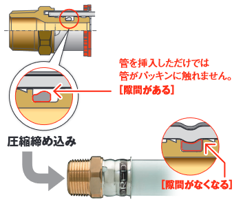 管を挿入しただけでは、止水しない構造となっているため、継手圧縮忘れは必ず水圧試験で発見できます。
