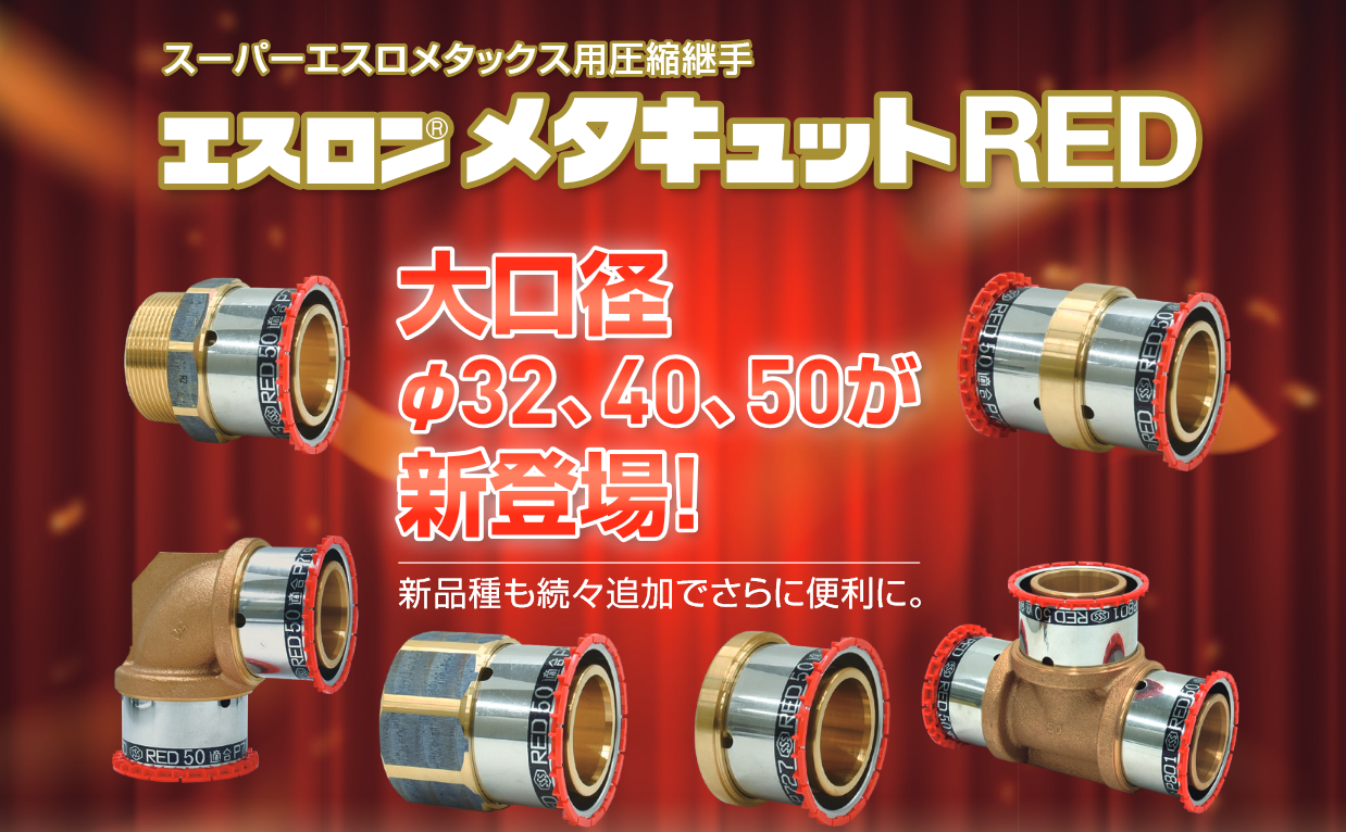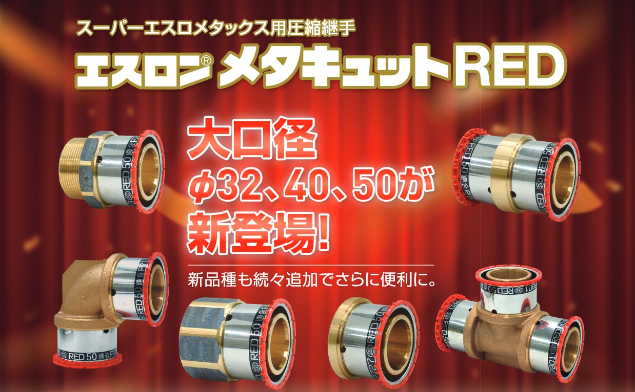 積水化学工業株式会社(代表取締役社長:加藤 敬太、以下「当社」)の環境・ライフラインカンパニー(プレジデント:平居 義幸)は、多くのお客様より品揃えの拡大についてご要望頂いておりました「エスロンメタキュットRED」の大口径(呼び径32・40・50)継手を、11月1日より発売開始しました。