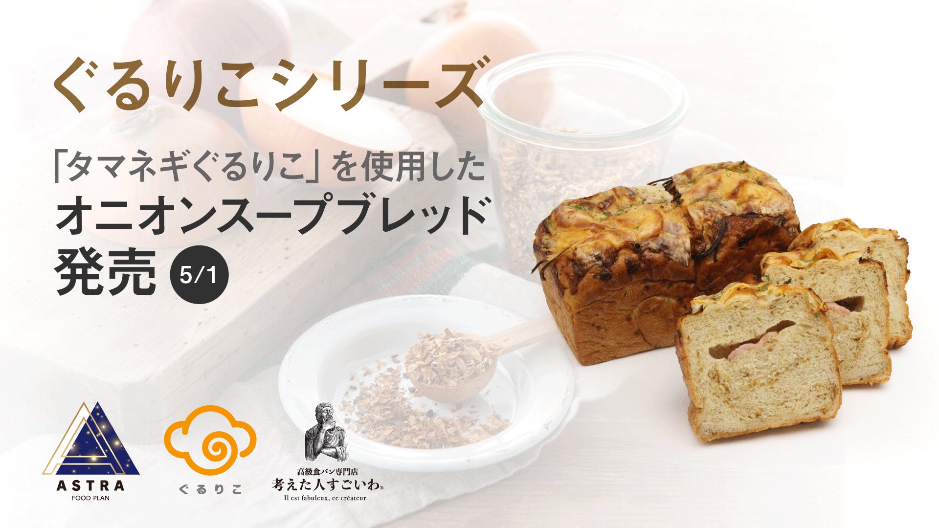 『ぐるりこ®』シリーズ!5月1日、高級食パン専門店「考えた人すごいわ」で、「オニオンスープブレッド」が販売開始