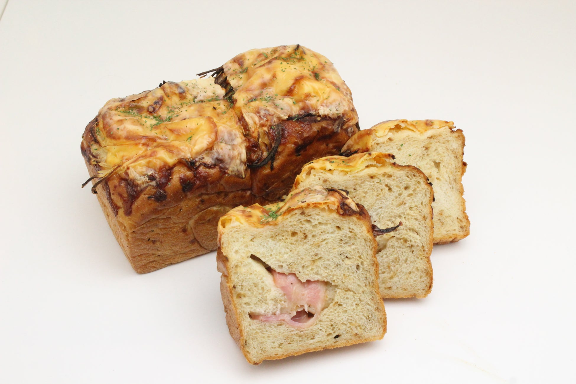 オニオンスープの風味を生地におり込んだ高級食パン。清瀬店で、1日20本限定販売