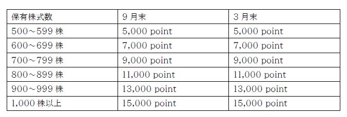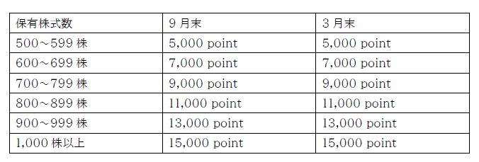 今回の株式分割による内容に変更はなく、500株以上保有の基準株数は据え置くため、実質的な制度拡充となります。