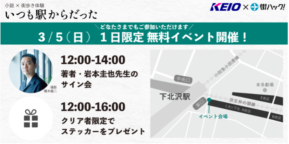 小説家の岩井圭也氏による、京王沿線の駅や街、実在する商店街・店舗などの地域コンテンツが盛り込まれた、オリジナル短編小説を用いた「小説×街歩き」体験型コンテンツです。