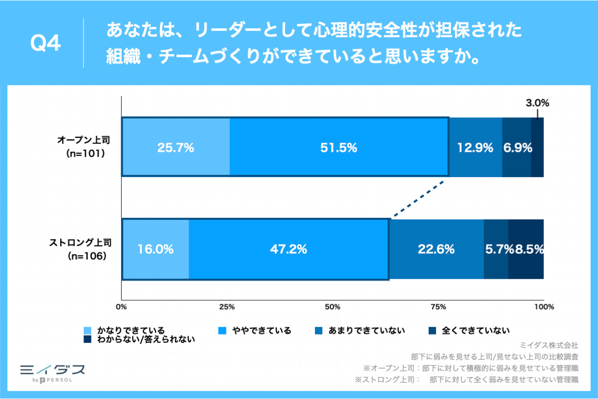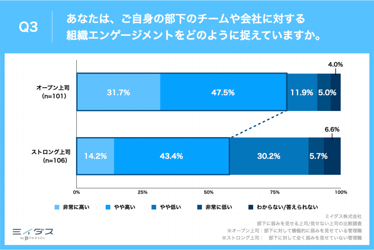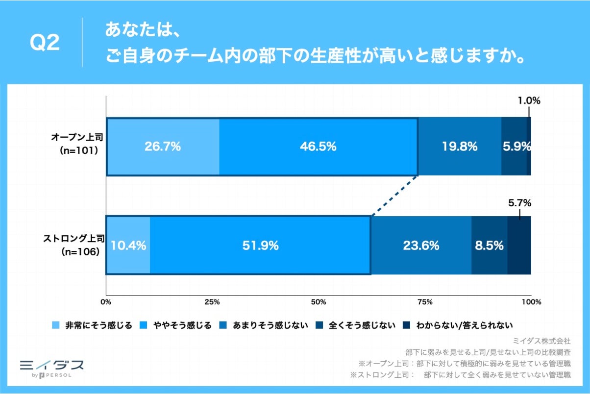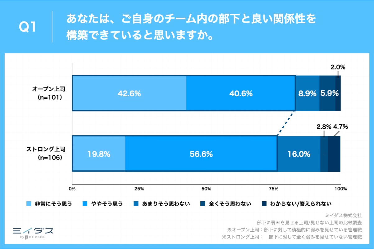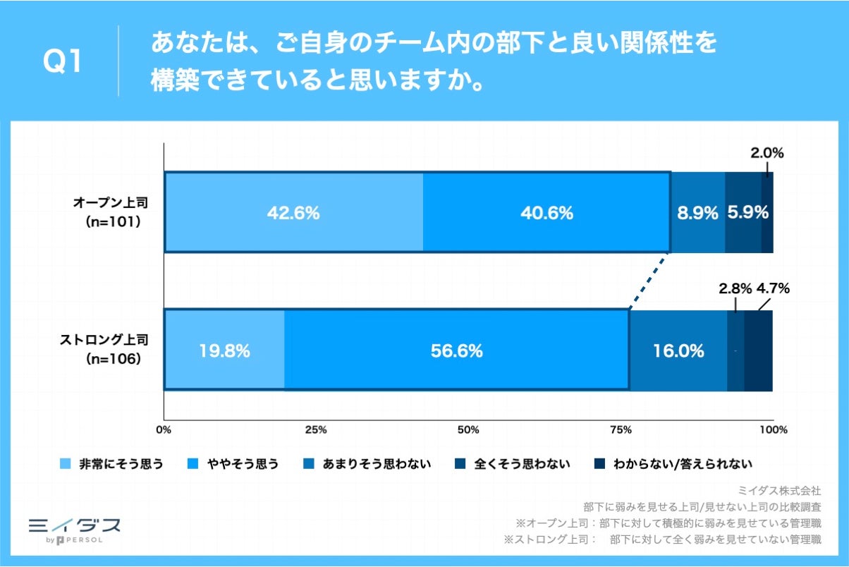 ▶️前編:部下に弱みを見せている『オープン上司の部下』と、部下に弱みを見せていない『ストロング上司の部下』を対象にした調査結果はこちら