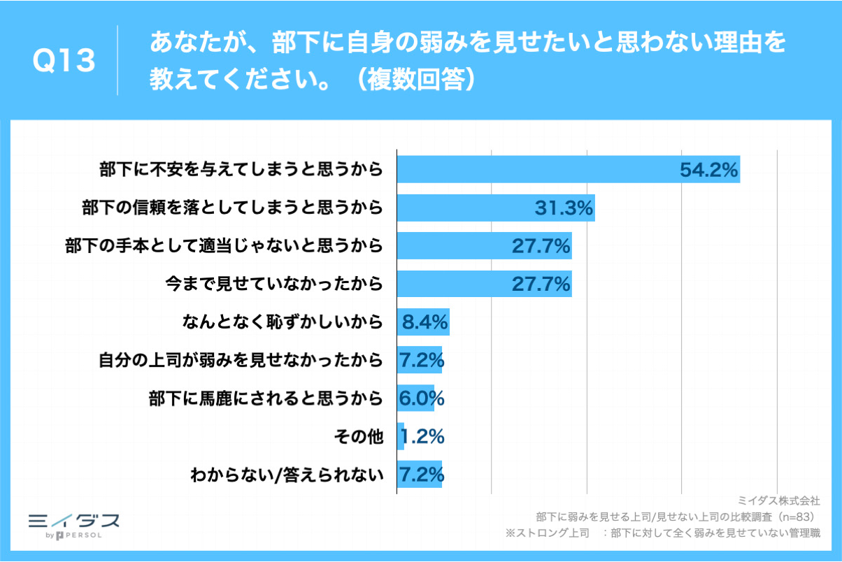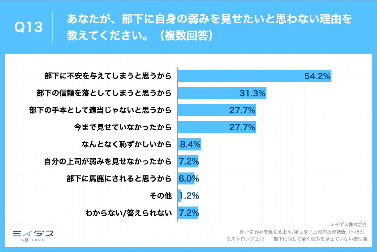 <ストロング上司:部下に対して全く弱みを見せていない管理職のうち、Q10で「あまりそう思わない」「全くそう思わない」と回答した方(n=83)>
