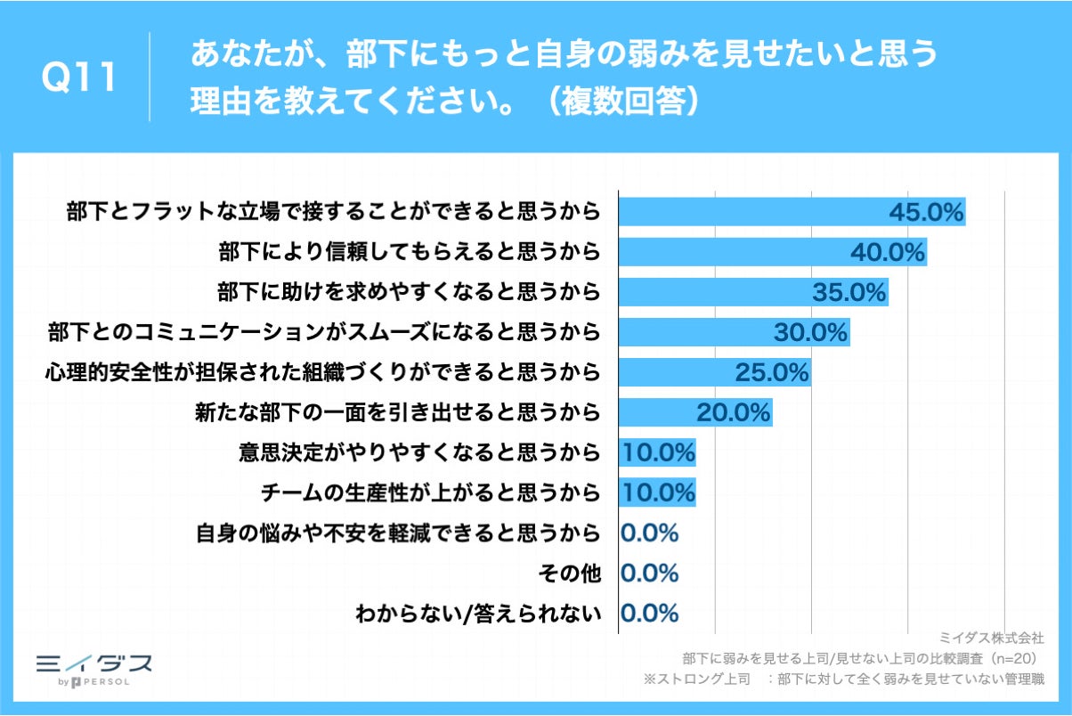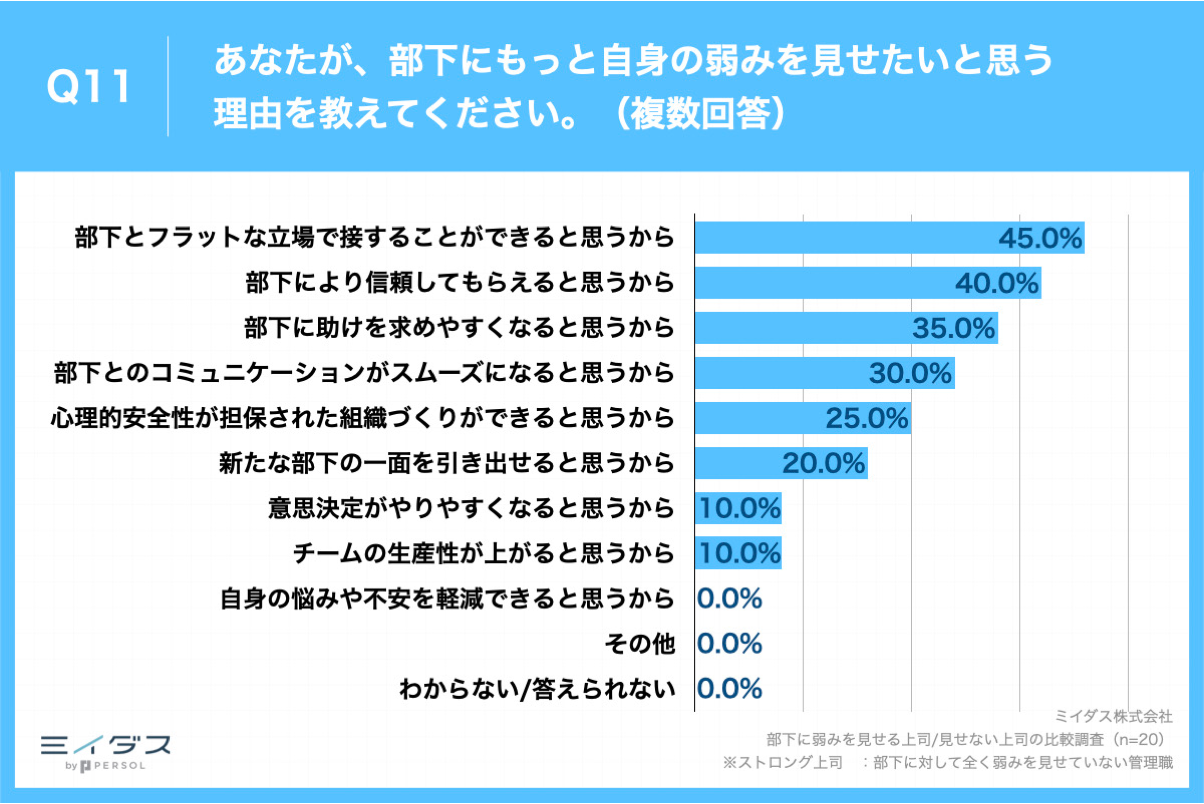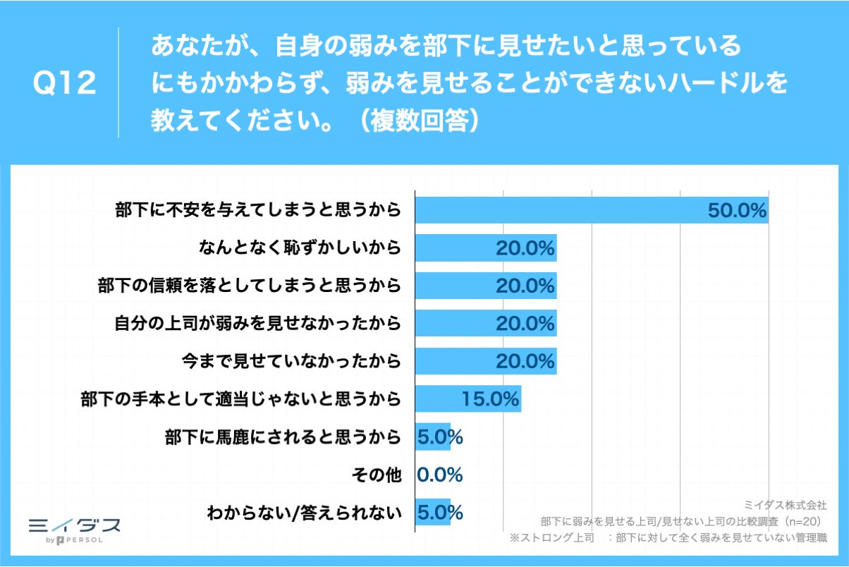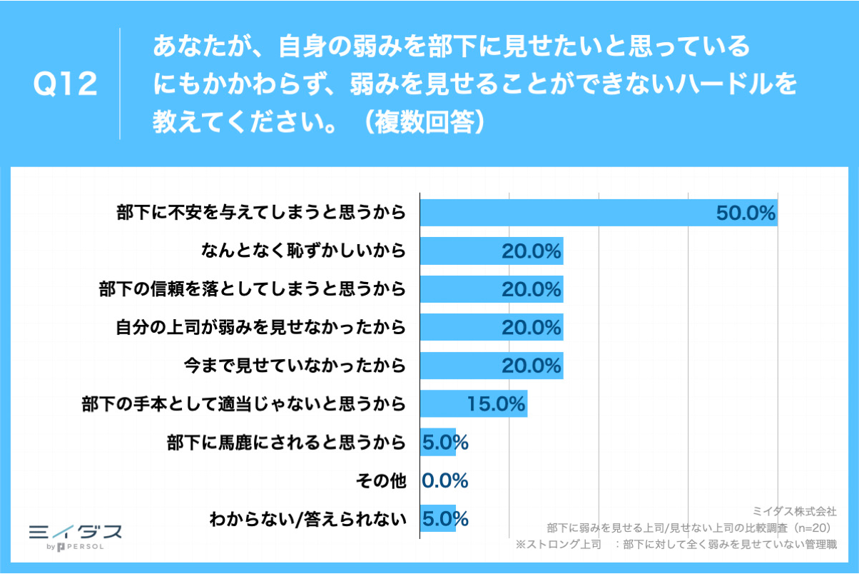 <ストロング上司:部下に対して全く弱みを見せていない管理職のうち、Q10で「非常にそう思う」「ややそう思う」と回答した方(n=20)>