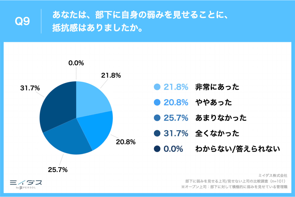 部下に自身の弱みを見せることに、4割以上が「抵抗感があった」と回答