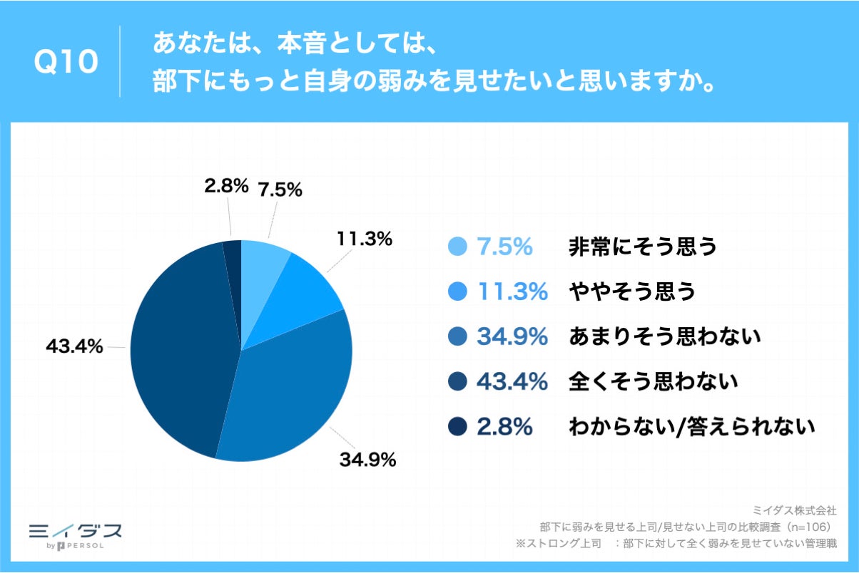 『ストロング上司』、「部下にもっと自身の弱みを見せたい」と回答したのはわずか約2割