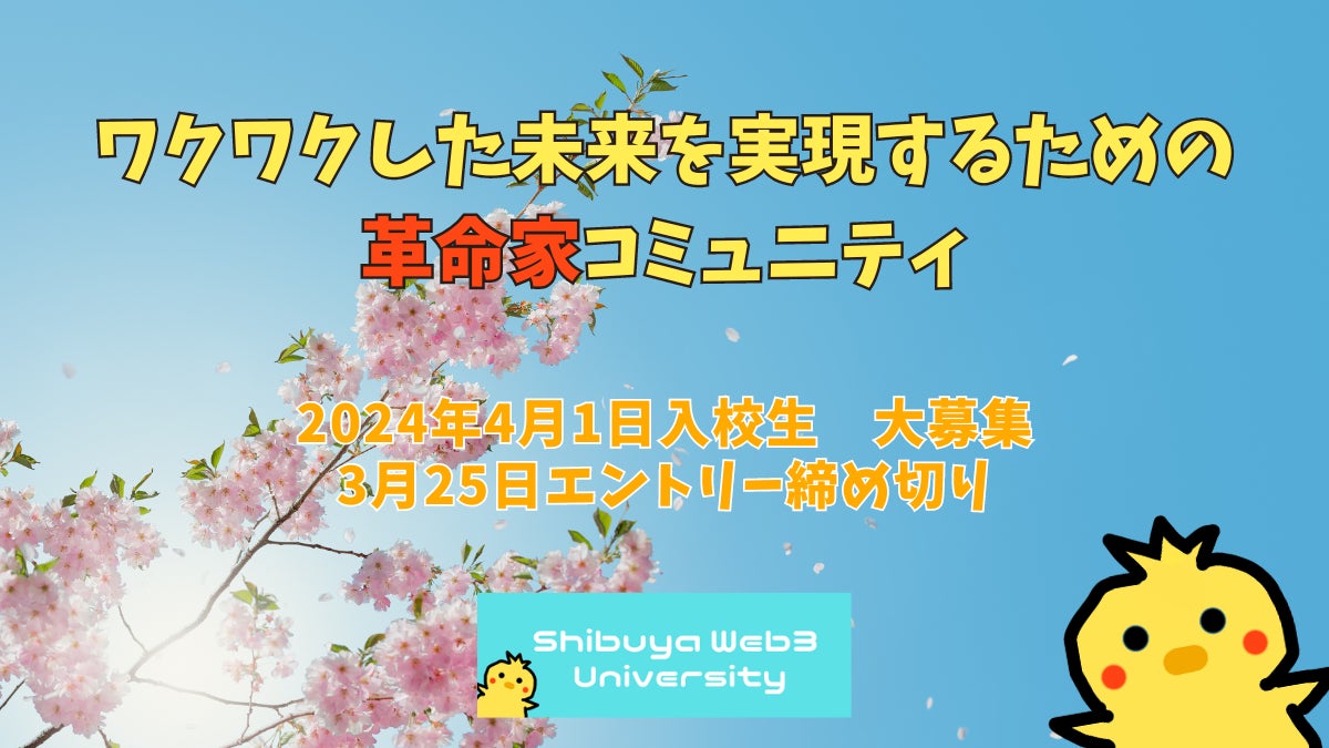 【4月1日入校生募集中】1周年を迎えた、Web3に特化した実践型のプロジェクト創発コミュニティ「渋谷Web3大学」では入校生を募集中です。大人気Web3勉強会イベントも続々決定。