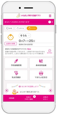 東京都板橋区に採用された『いたばし子育て応援アプリ』は、スマートフォン・タブレット端末・PCに対応したサービスで、妊産婦と子どもの健康データの記録・管理や予防接種のスケジュール管理、出産・育児に関するアドバイスの提供、離れた地域に住む祖父母など家族との共有機能や、区が配信する地域の情報をお知らせするなど、育児や仕事に忙しい母親や父親を助けてくれる便利な機能が充実しています。育児日記として使用できる「できたよ記念日」は、厚生労働省の母子健康手帳様式例などを元に作成し、子育ての思い出を残すだけではなく、子どもの成長・発達の目安としての役割も備えています。