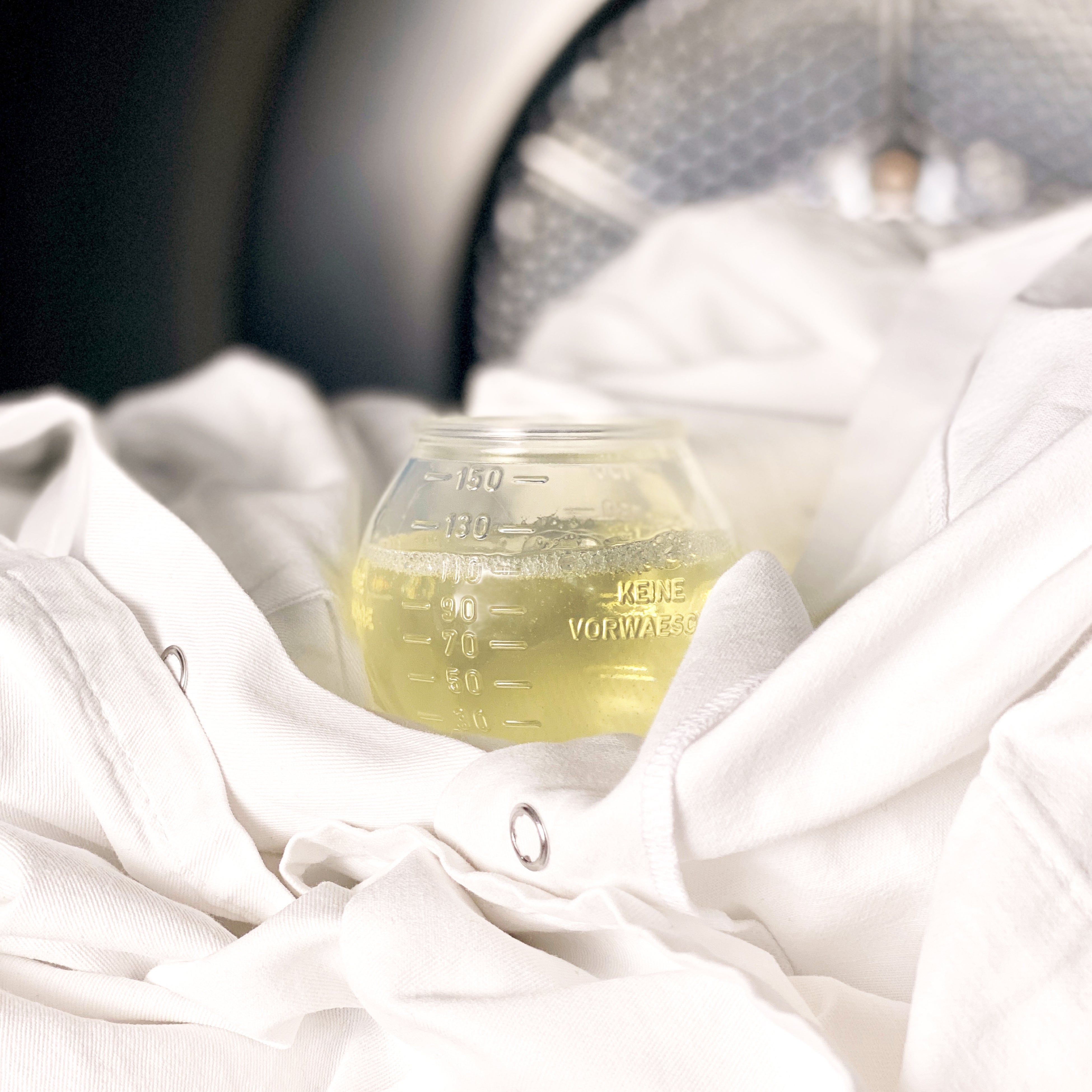 水にもさっと溶け、溶け残りもない白物用液体洗剤。