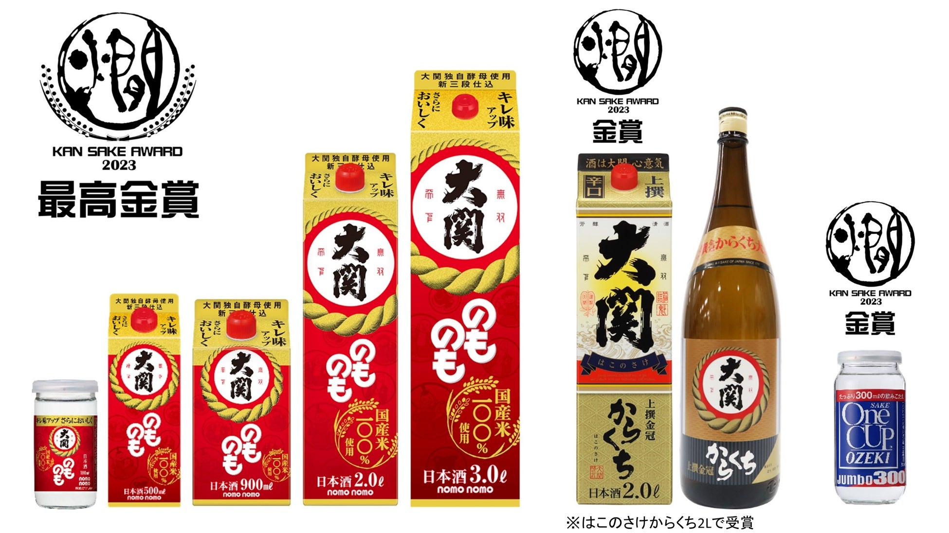 大関株式会社(社長:長部訓子/兵庫県西宮市)は、「全国燗酒コンテスト2023」の“お値打ち熱燗部門”で「のものも」が最高金賞を、「上撰金冠はこのさけ からくち」「ワンカップジャンボ」が金賞を受賞しました。