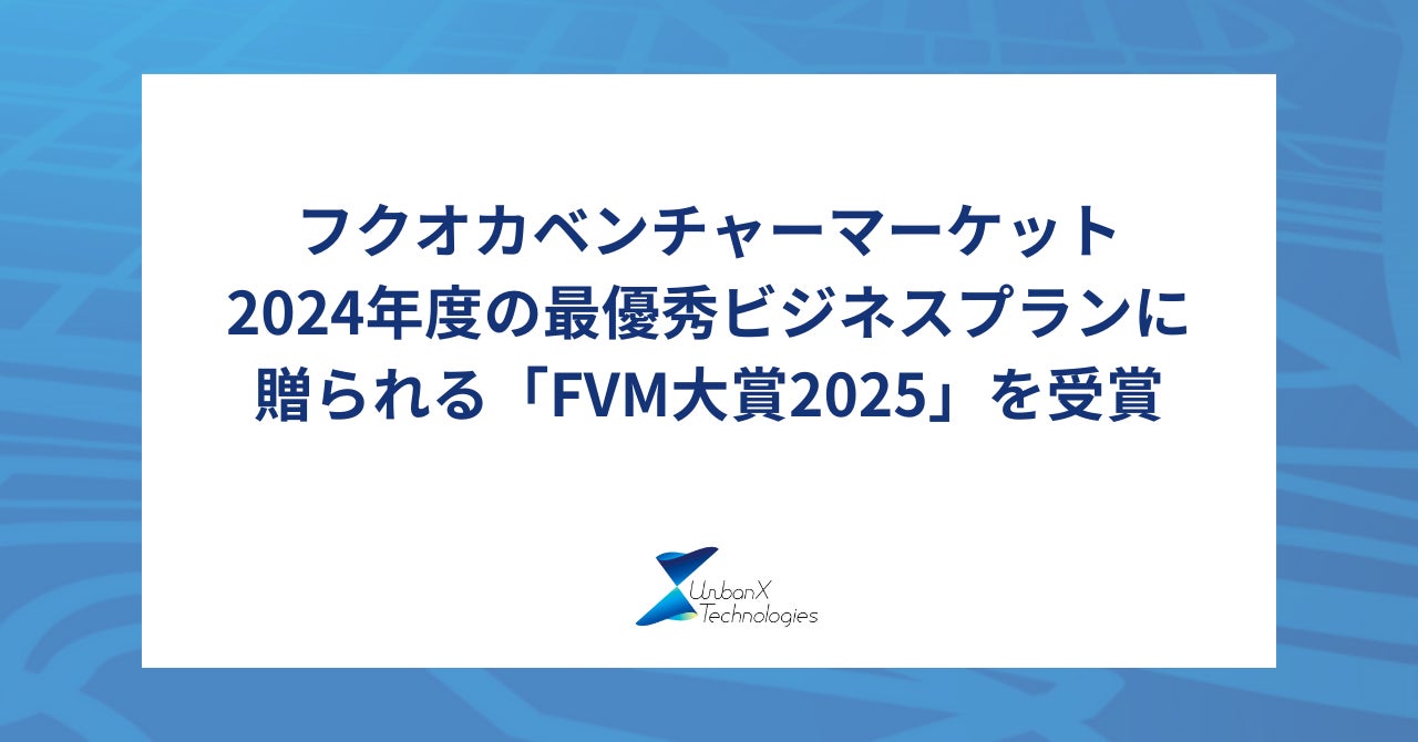 株式会社アーバンエックステクノロジーズ(本社:東京都中央区、代表取締役:前田 紘弥、以下 アーバンエックス)は、福岡県ベンチャービジネス支援協議会(本部:福岡市、会長:貫正義)が主催する中小・ベンチャー企業のための支援プログラム「フクオカベンチャーマーケット(以下 FVM)」にて、当社のビジネスプランを発表し、2024年度のFVM参加企業の中でも、最も優れたビジネスプランに贈られる「FVM大賞2025」を受賞しました。