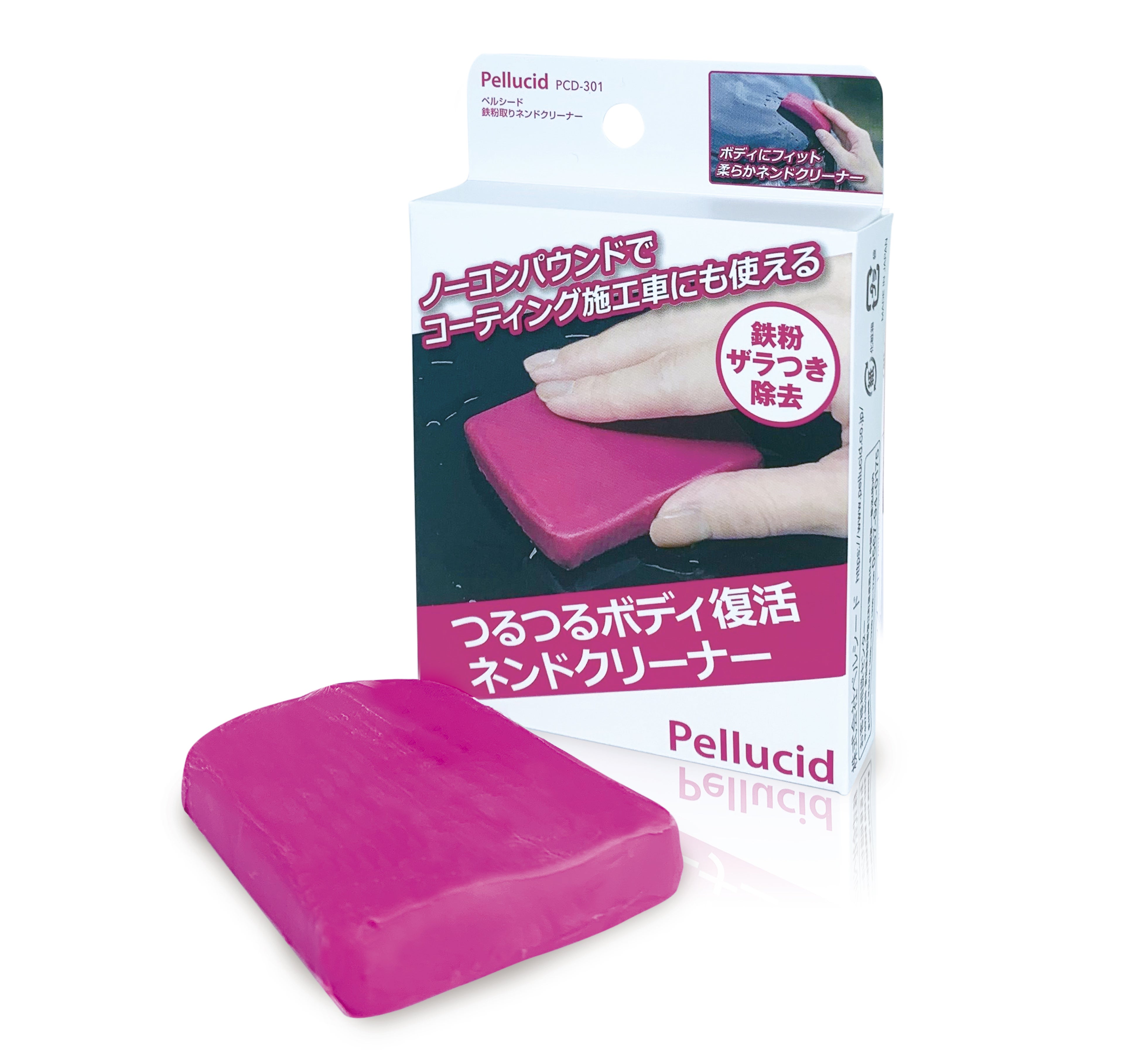 従来品(PCD-07)のリニューアル商品。柔らかくよくのびて、練りやすいネンドで初心者でも使いやすく、洗車では取り切れない鉄粉・ザラつきを吸着除去し、つるつるボディを復活。ノーコンパウンドでコーティング施工車にも使用できます。