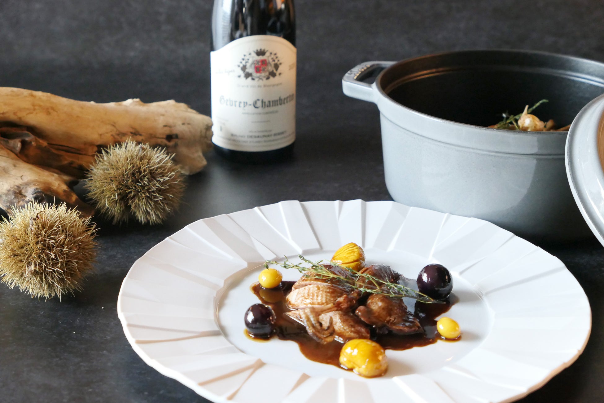 ジビエ料理とペアリングした赤ワインはジュヴレ・シャンベルタン・ヴィエイユ・ヴィーニュ 2020。愛好家が探し求めるため自国フランスでも入手困難を極める、フランボワーズ、苺などの赤系果実のイメージがピュアかつクリアに立ち上がり、薔薇や菫の花のフローラルな印象がジビエの味わいをより豊かにお楽しみいただけます。力強いジビエの味わいとワインとのペアリングをぜひお楽しみください。