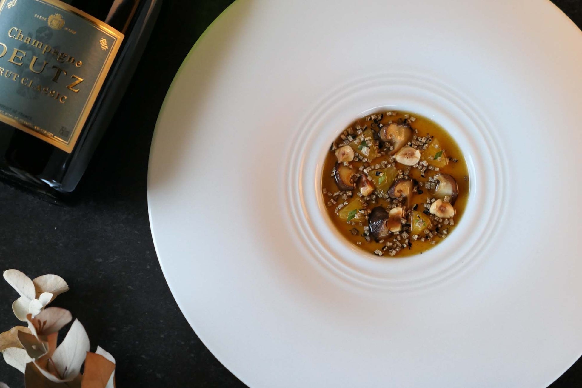 ブルターニュ産オマール海老と富士裾野のマッシュルーム, ラビオリ, 秋トリュフ, ビスク
