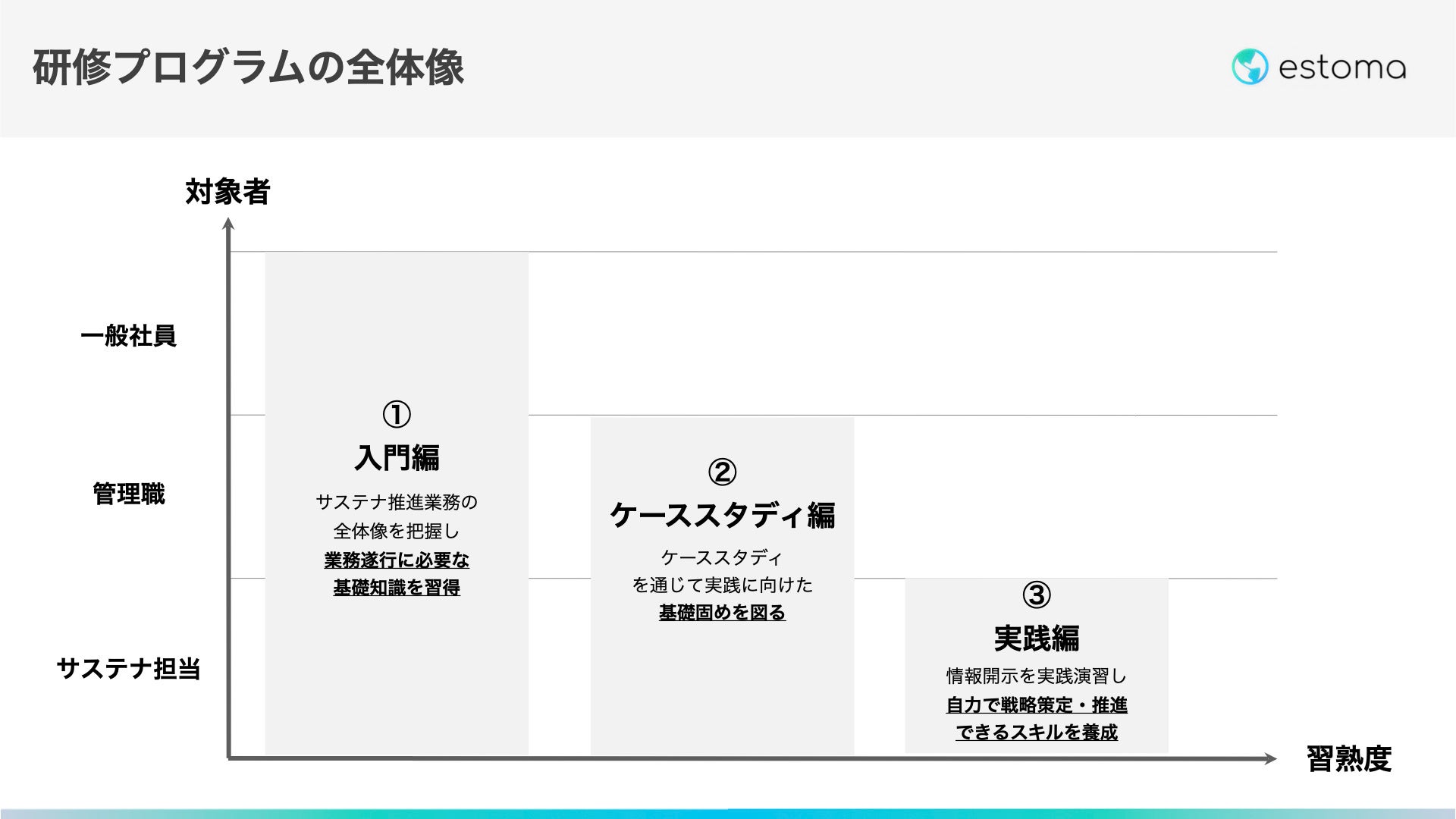 上記の背景から、estomaでは「サステナビリティ人材の育成」が重要だと捉え、サステナビリティ人材育成プログラムを開発しました。