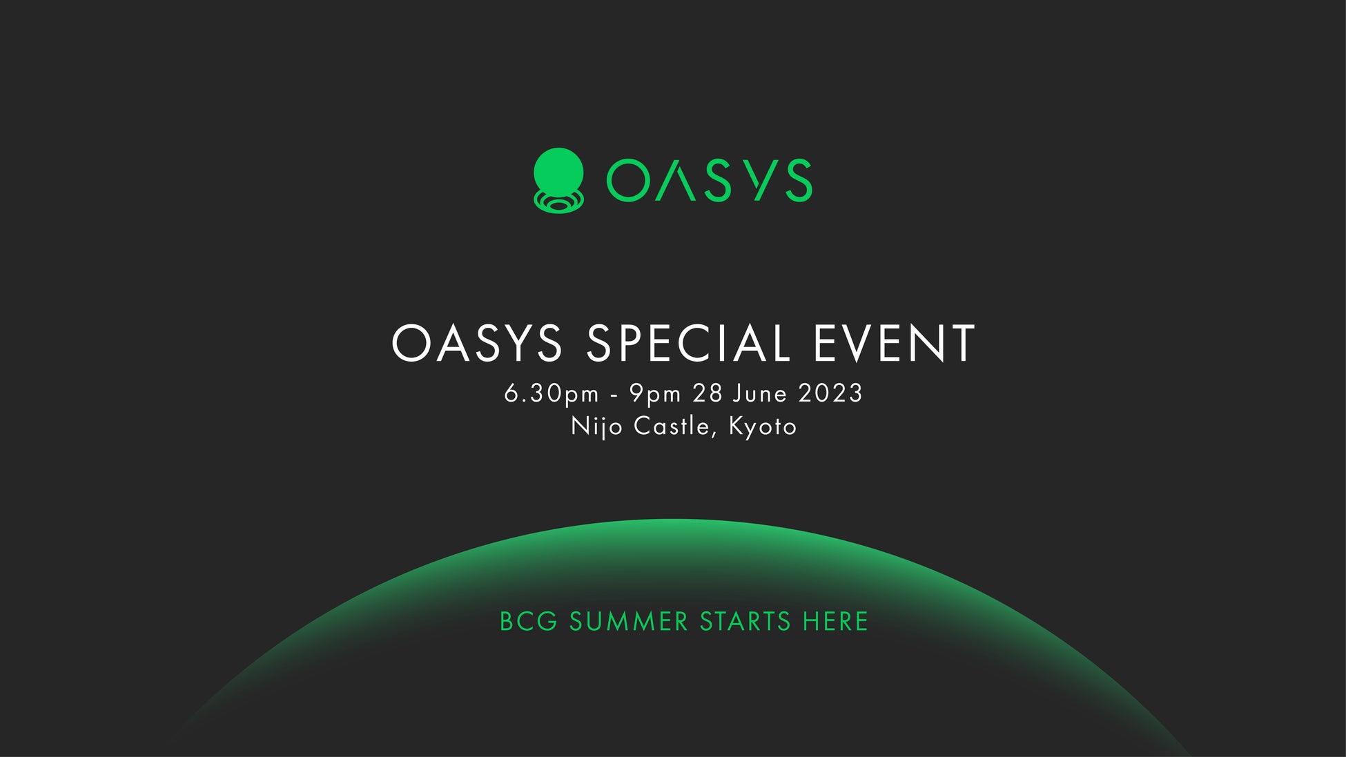 ゲーム特化型ブロックチェーンOasysは、2023年6月28日(水)に二条城にて開催する「Oasys Special Event」において、大手を含むゲーム会社や各種プロジェクトの登壇が決定したことをお知らせいたします。