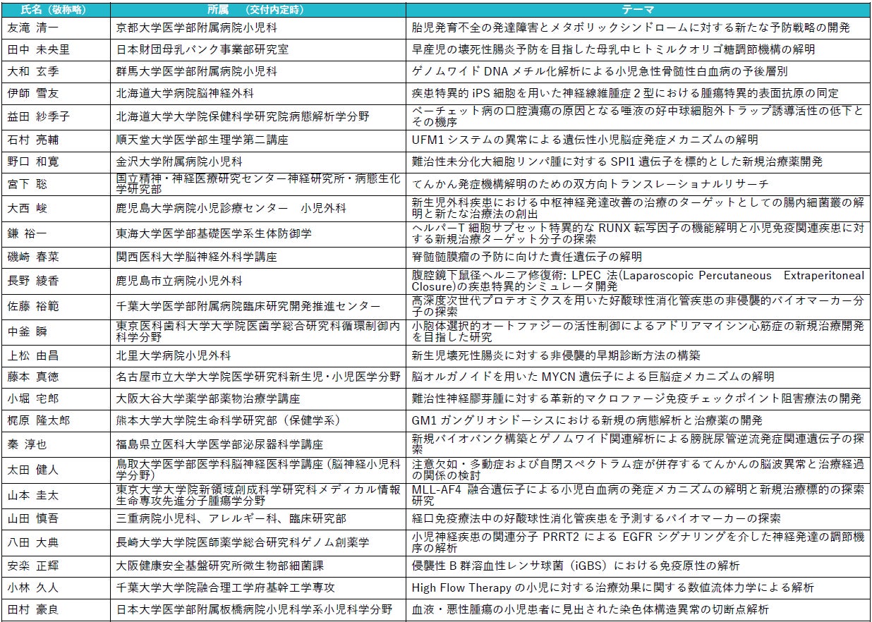 小児科の研究分野は細分化されておりますが、他科との競合もあるなか研究費の獲得は容易ではありません。貴財団のような小児に特化した研究助成は大変貴重であり、今後も継続いただけることを切に望みます。この度は誠に有難うございました。(2022年度研究助成受給者)