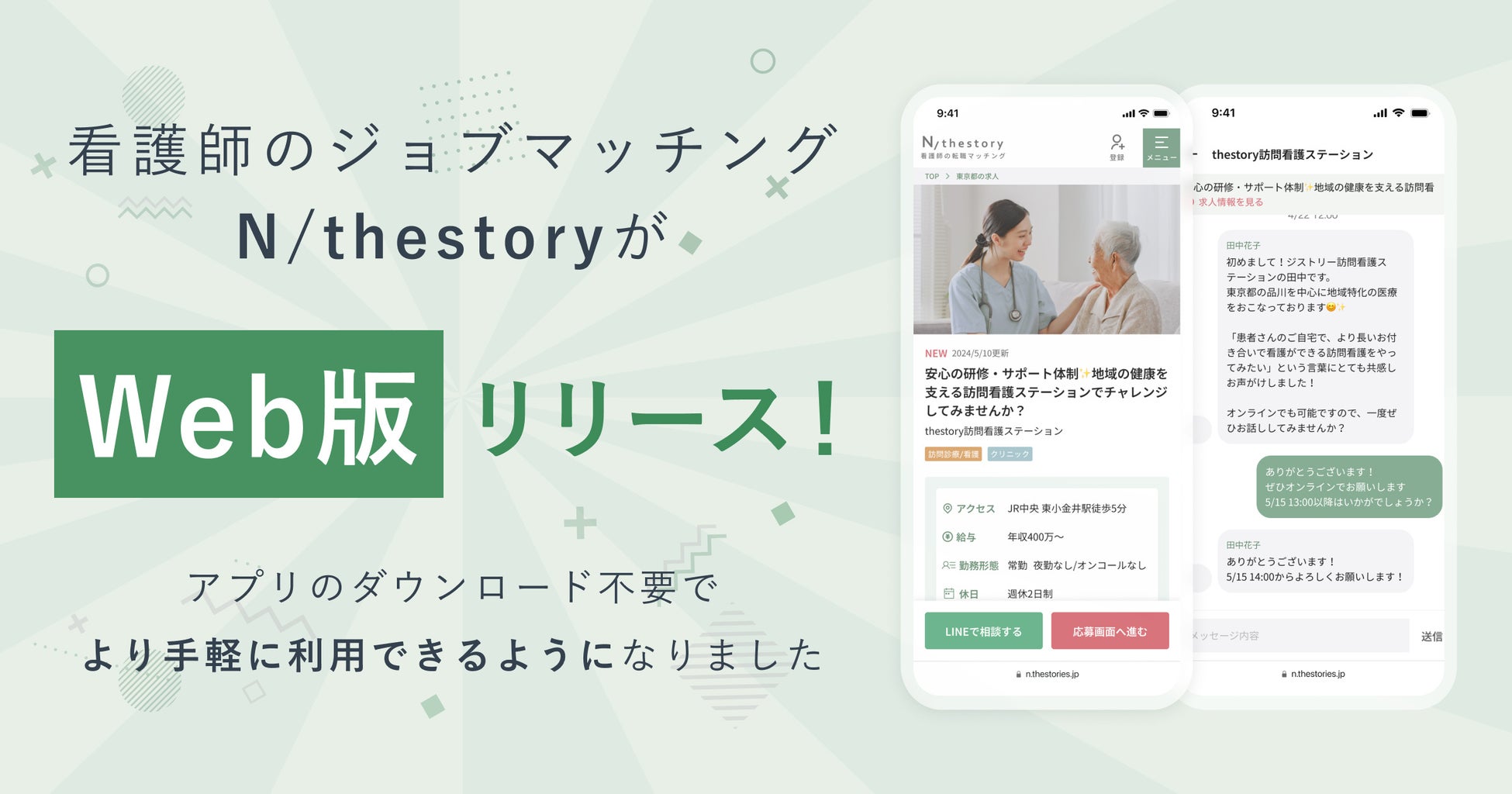 看護師のジョブマッチングアプリ「N/thestory(ジストリー)」について https://n.thestories.jp/