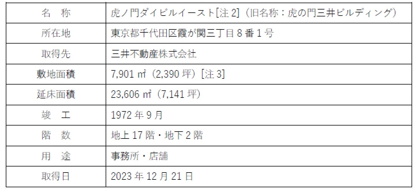 「虎の門三井ビルディング(新名称:虎ノ門ダイビルイースト)」(信託受益権)取得のお知らせ