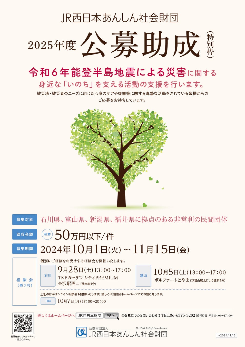 今年度は、「令和6年能登半島地震」に対する復興支援活動も対象とし、石川県、富山県、