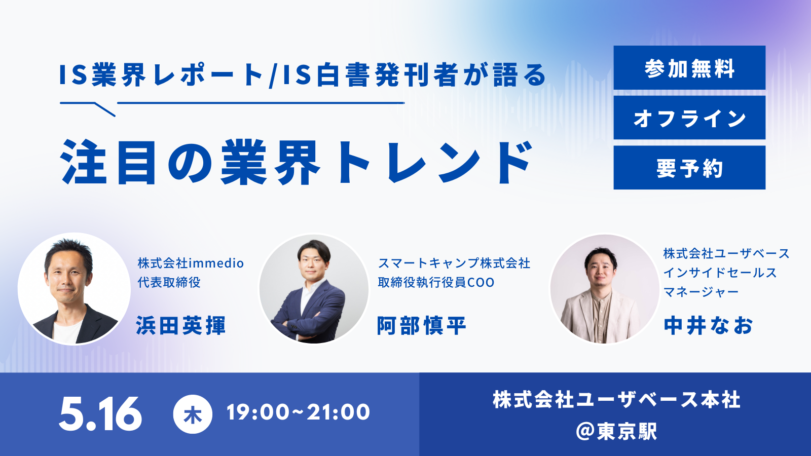 また、インサイドセールス業界レポートを発行するスマートキャンプ社とオフラインイベント「インサイドセールスの定点観測 IS業界レポート/IS白書発刊者が語る注目の業界トレンド」を5月16日に開催することをお知らせします。
