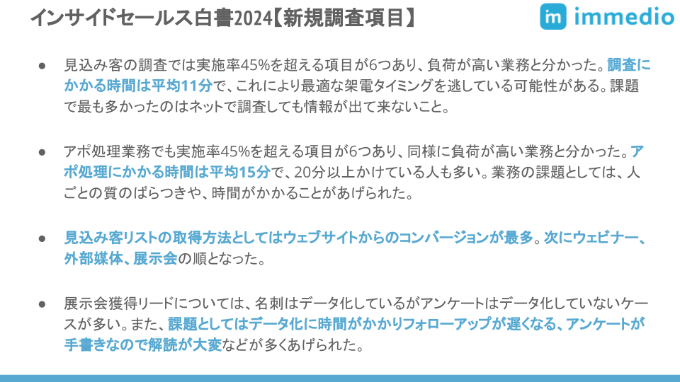 リード商談化ツールのimmedioが「インサイドセールス白書2024」を発刊【新規調査項目編】