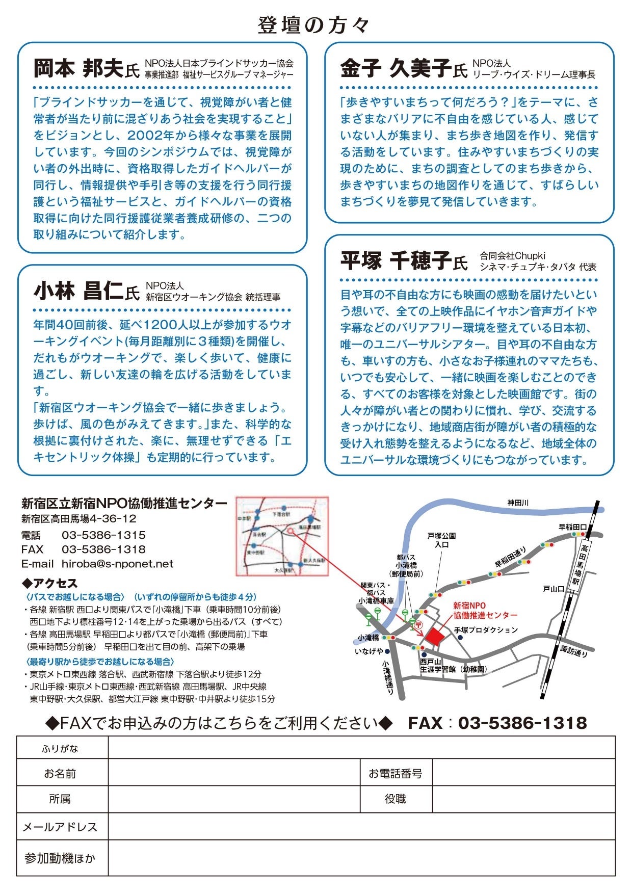 ◆会場:新宿区立新宿NPO協働推進センター 1階多目的室