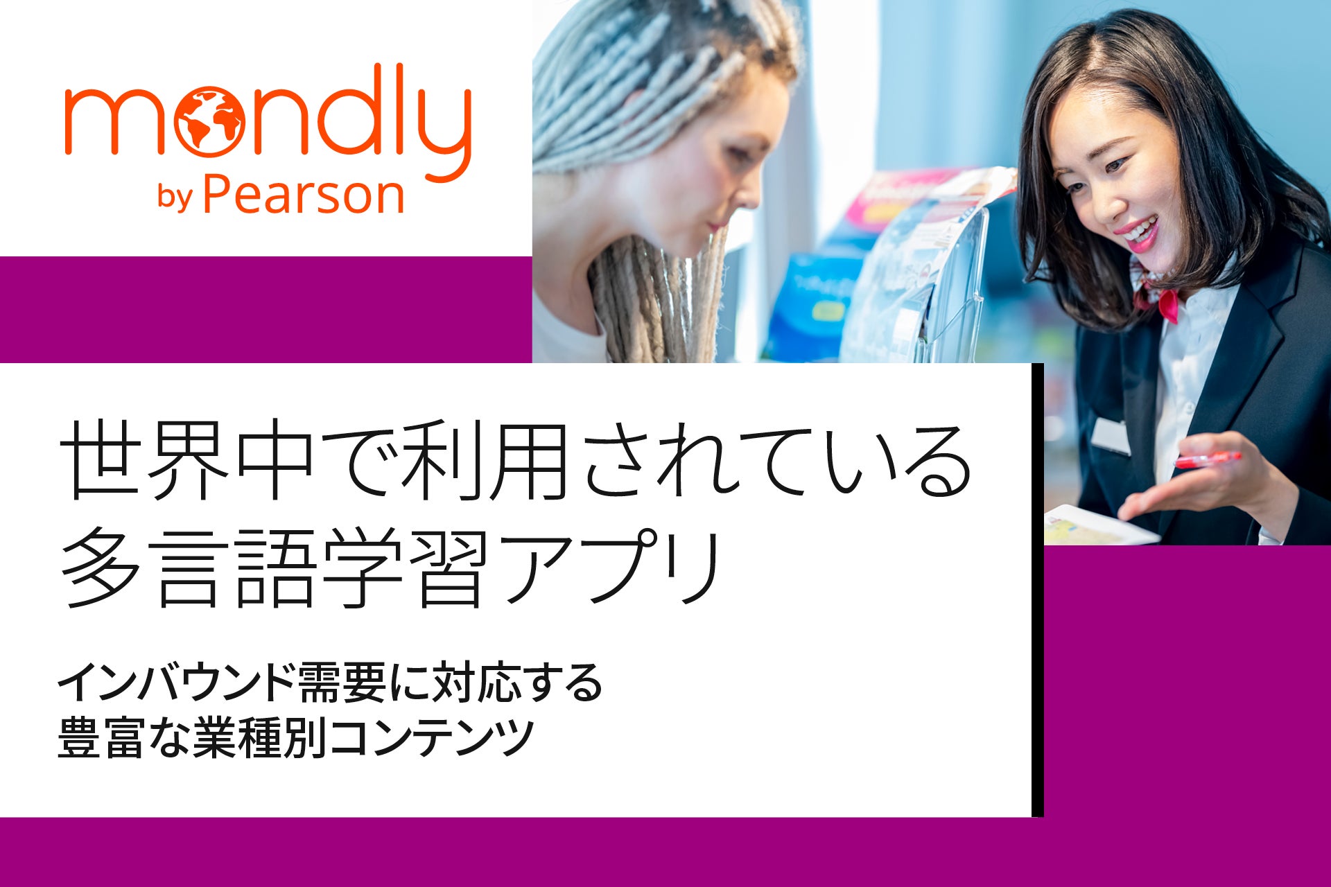 2023年の訪⽇客数は2,500万⼈を超え、英語のみならず多⾔語での対応が不可⽋になっています。語学学習の専⾨知識と最先端テクノロジーの組み合わせた多⾔語学習アプリMondly by Pearsonは、柔軟なオンライン語学学習ソリューションを提供します。