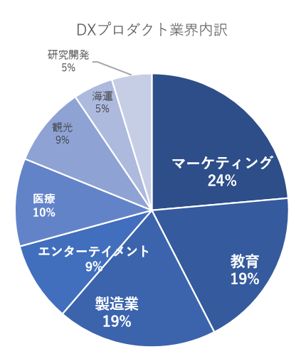 業界DXの対象業界はマーケティング、教育、製造業など多岐に渡っています。