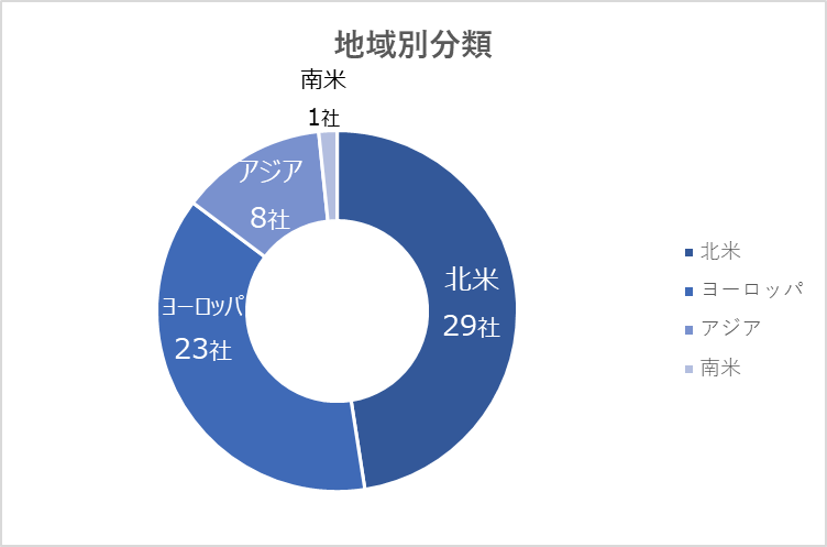 北米企業が半分を占めており、その中でも23社はアメリカを本拠地とするパートナーです。