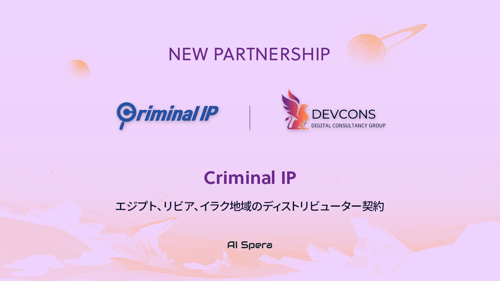 DEVCONSは、エジプトのテックパークで最大のセキュリティサービスプロバイダ(MSSP、Managed Security Service Provider)の一つを所有しており、MENA(中東・北アフリカ)地域の銀行及び金融機関、そしてAramexのようなグローバル企業の中東支社に主要サービスを提供しています。AI SPERAは今後中東市場全般で活発なネットワークを保有しているDEVCONSを通じて「Criminal IP」を中東地域の様々な顧客に販売する予定です。特に、今回の業務提携を通じて、DEVCONSはエジプト、リビア、イラク地域での「Criminal IP」ディストリビューターとして「Criminal IP」と派生セキュリティソリューションの再販権を持つことになり、サウジアラビアやUAEなどの周辺国へ当製品の流通を拡大する計画です。