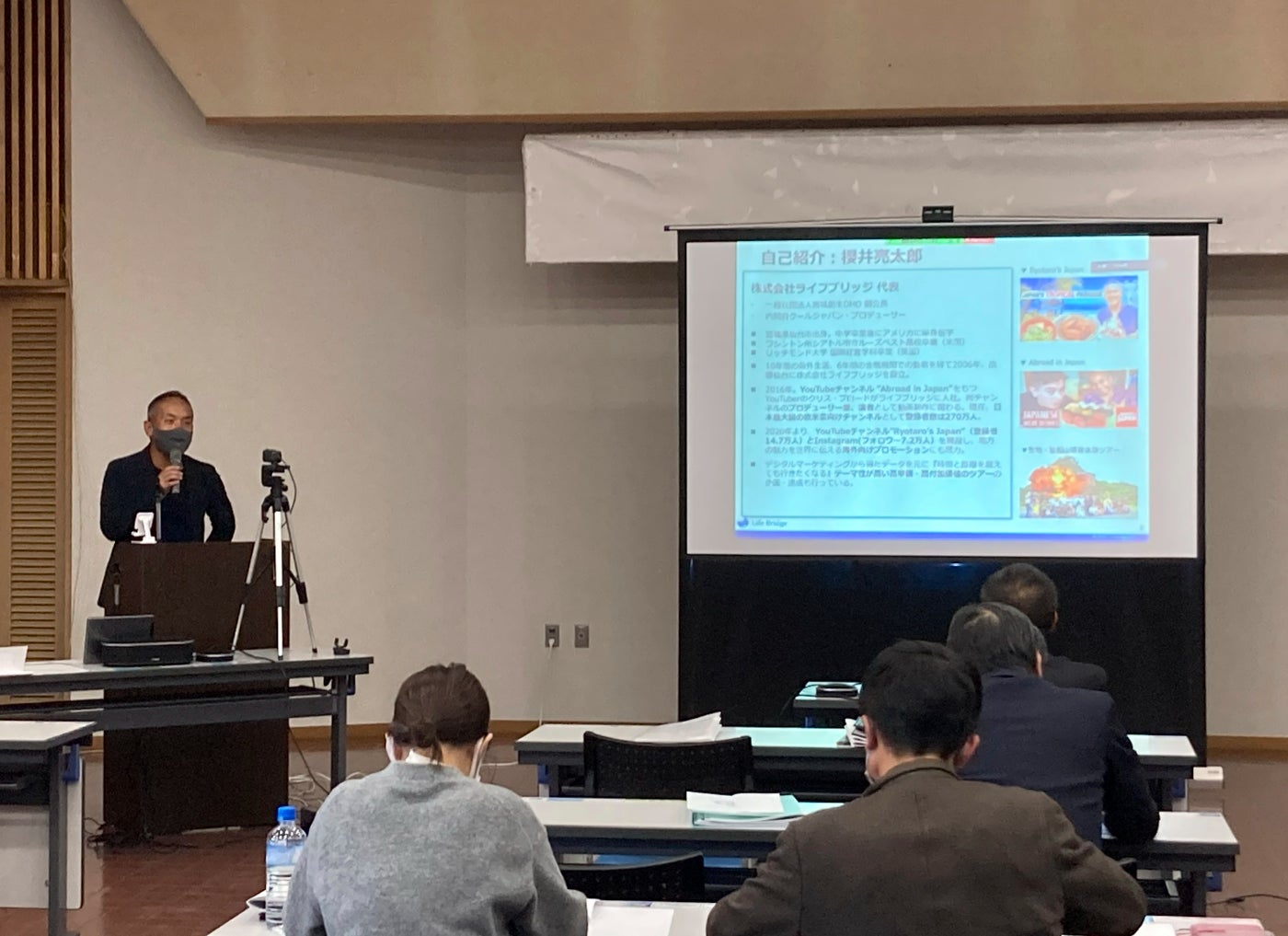後半はゲスト講師の(株)ライフブリッジ代表取締役 櫻井亮太郎氏より「魅力的な観光プログラム造成と情報発信」をテーマにした講義が行われました。