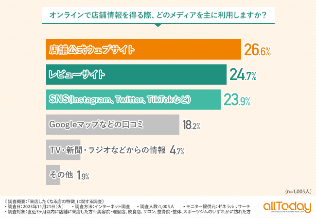 また、公式のウェブサイトだけでなくSNSの活用もユーザーに「選んでもらえるお店」になるには重要ということが明らかになりました。