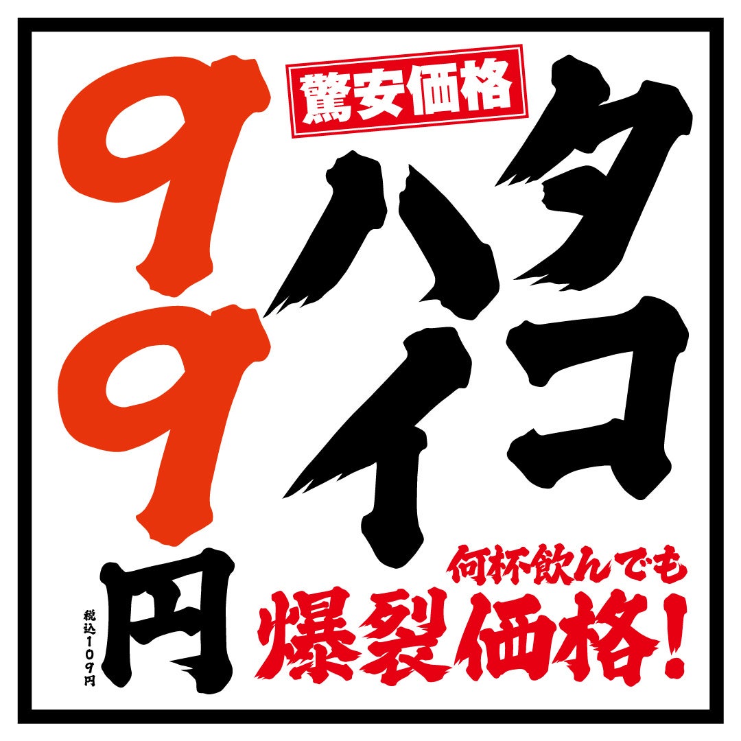 タコハイ99円、生ビール199円!大阪駅前第4ビル地下に170席の大型大衆居酒屋がオープン。