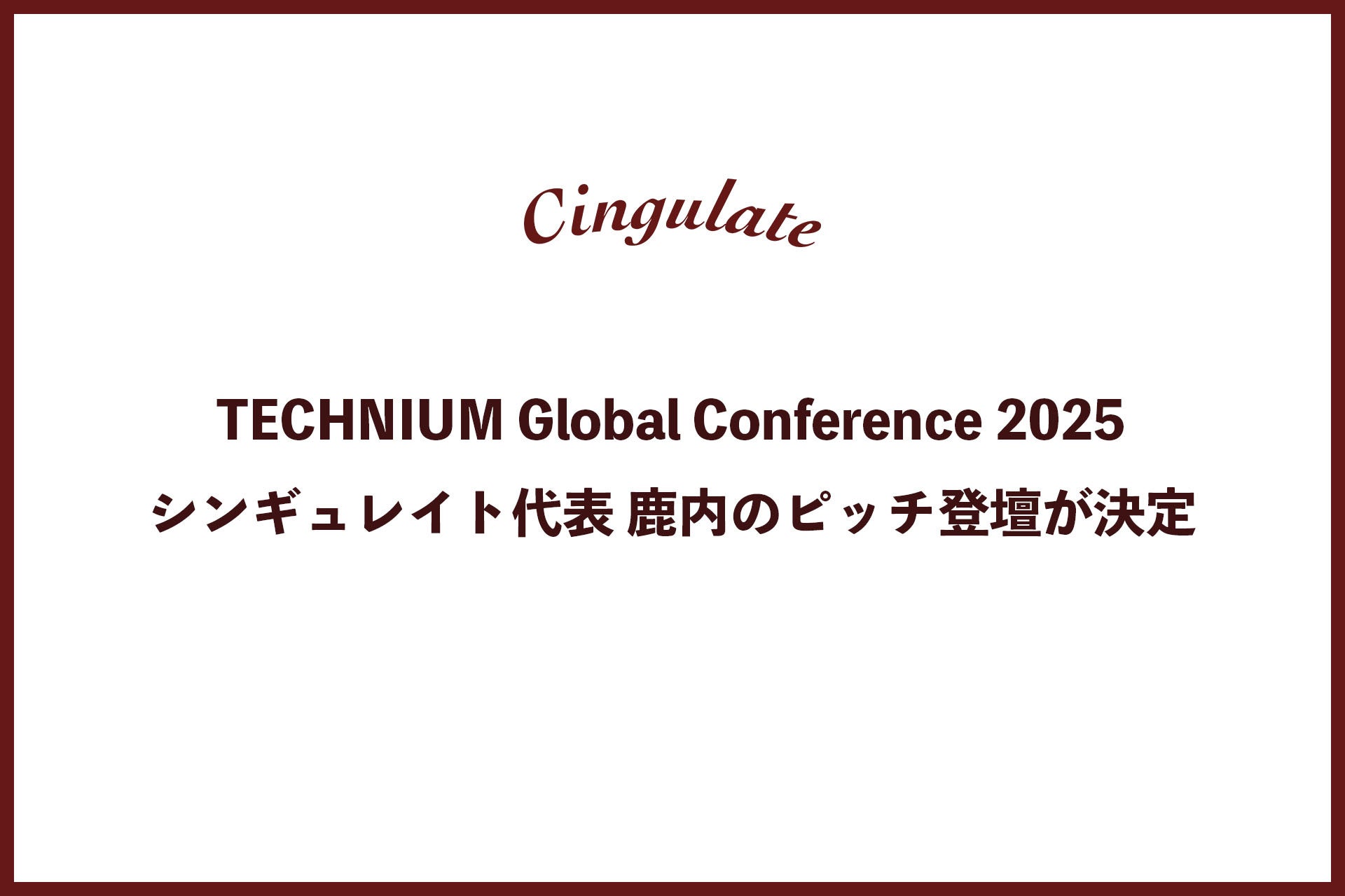 株式会社シンギュレイト(所在地:東京都渋谷区 代表取締役:鹿内 学、以下シンギュレイト)は、2025年5月7日(水)~5月8日(木)に帝国ホテル東京にて開催される2000名規模の日本最大級のディープテックカンファレンス「TECHNIUM Global Conference」のSHOWCASEに、ピッチ登壇が決定したことをお知らせします。15:35~15:55の枠にて登壇予定です。