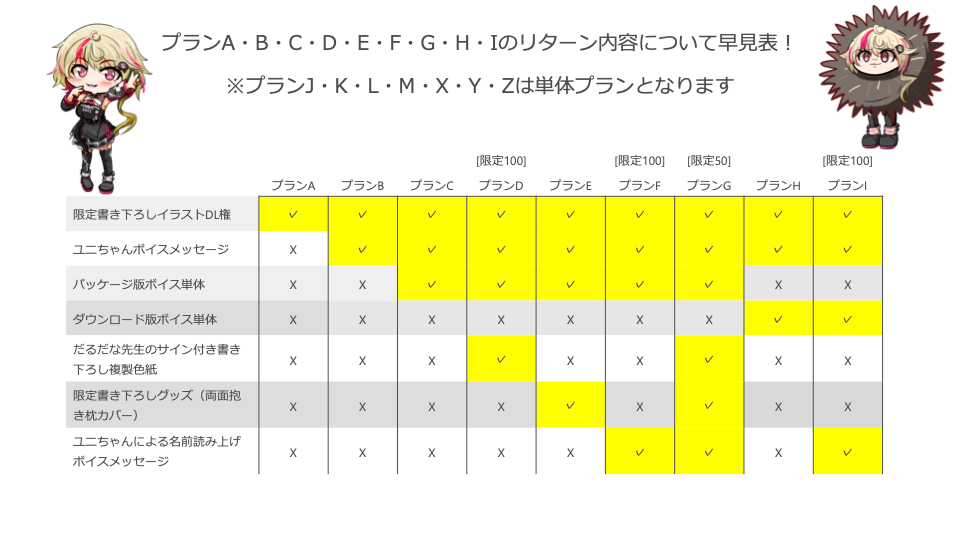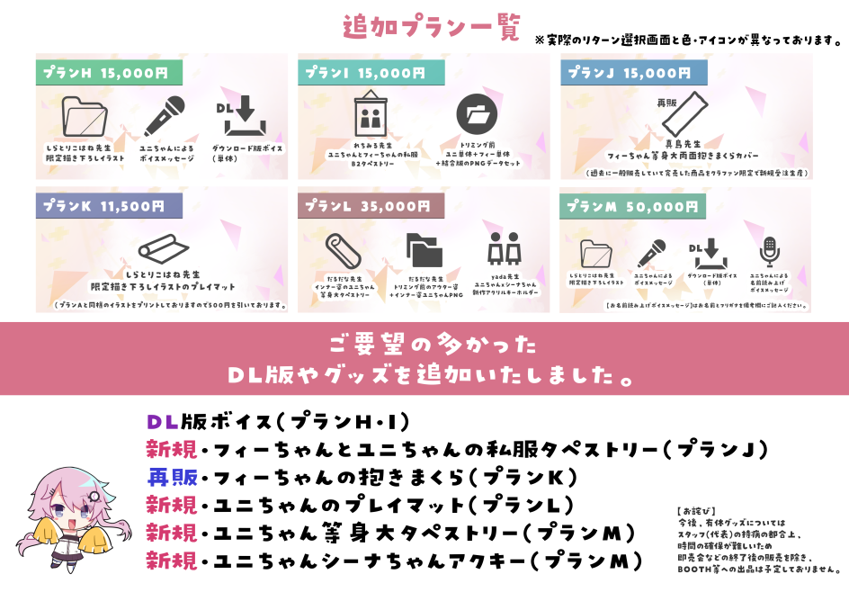 100%達成を記念してプランH・I・J・K・L・Mを追加いたいました。