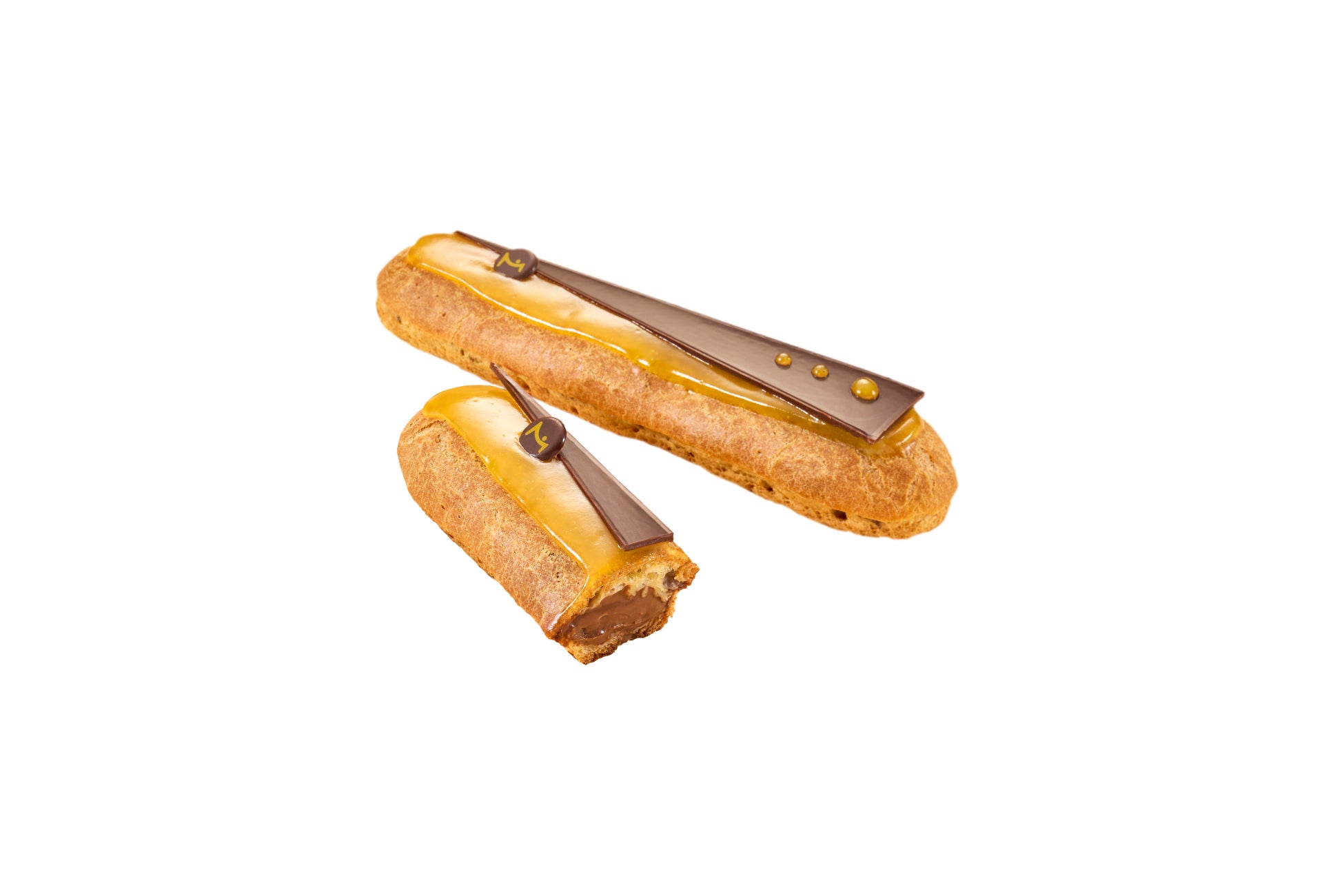内容:マンダリンオレンジ風味のダークガナッシュ入りのエクレール。濃厚なダークチョコレートクリームと、香り高く爽やかな酸味のあるマンダリンオレンジのピュレに、グラサージュのコンフィがフルーティーな風味を引き立てた深みのある味わい。