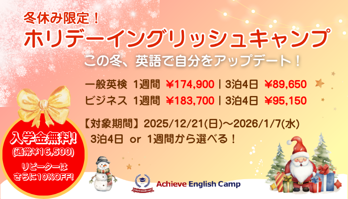 Achieve English Campでは、学校がお休みのクリスマスや年末年始を「英語で過ごす特別な時間」に変えることができます。