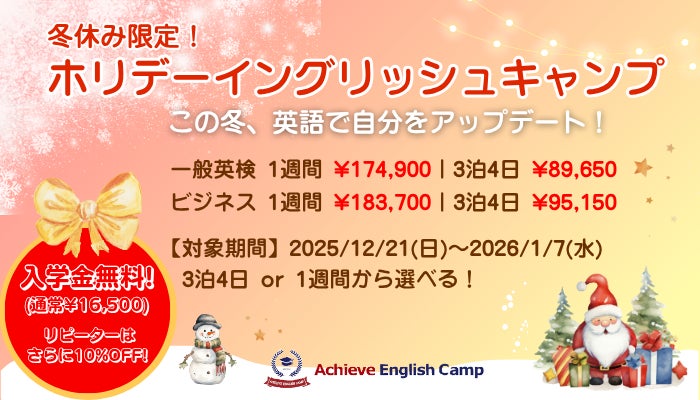 国内で本格留学体験!大人気の「Achieve English Camp」が冬休みにパワーアップして開催🎅✨