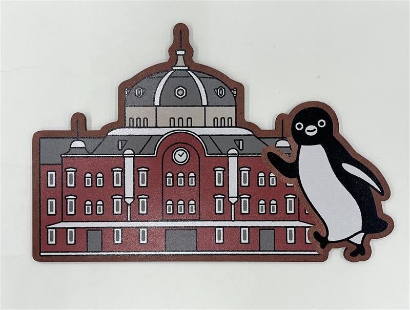 Suicaのペンギンと東京駅丸の内駅舎の形にダイカットされた、木製のポストカードです。レンガ造りが象徴的なデザインは、送っても、インテリアとして飾っても、思い出に残る一品です。